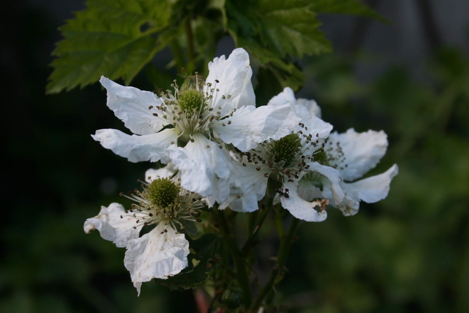 Looking forward to the fruits from this Rubus fruticosus cv. - Blackberry cultivar 'Reuben'. This cultivar is unusual for blackberry in that it produces fruit on new growth, known as a primocane. We get some great fruit from this plant in the summer and it continues to flower into late October and although the fruit does not ripen that late in the season the flowers do provide scarce forage for pollinators.